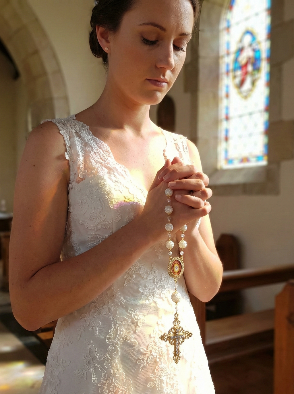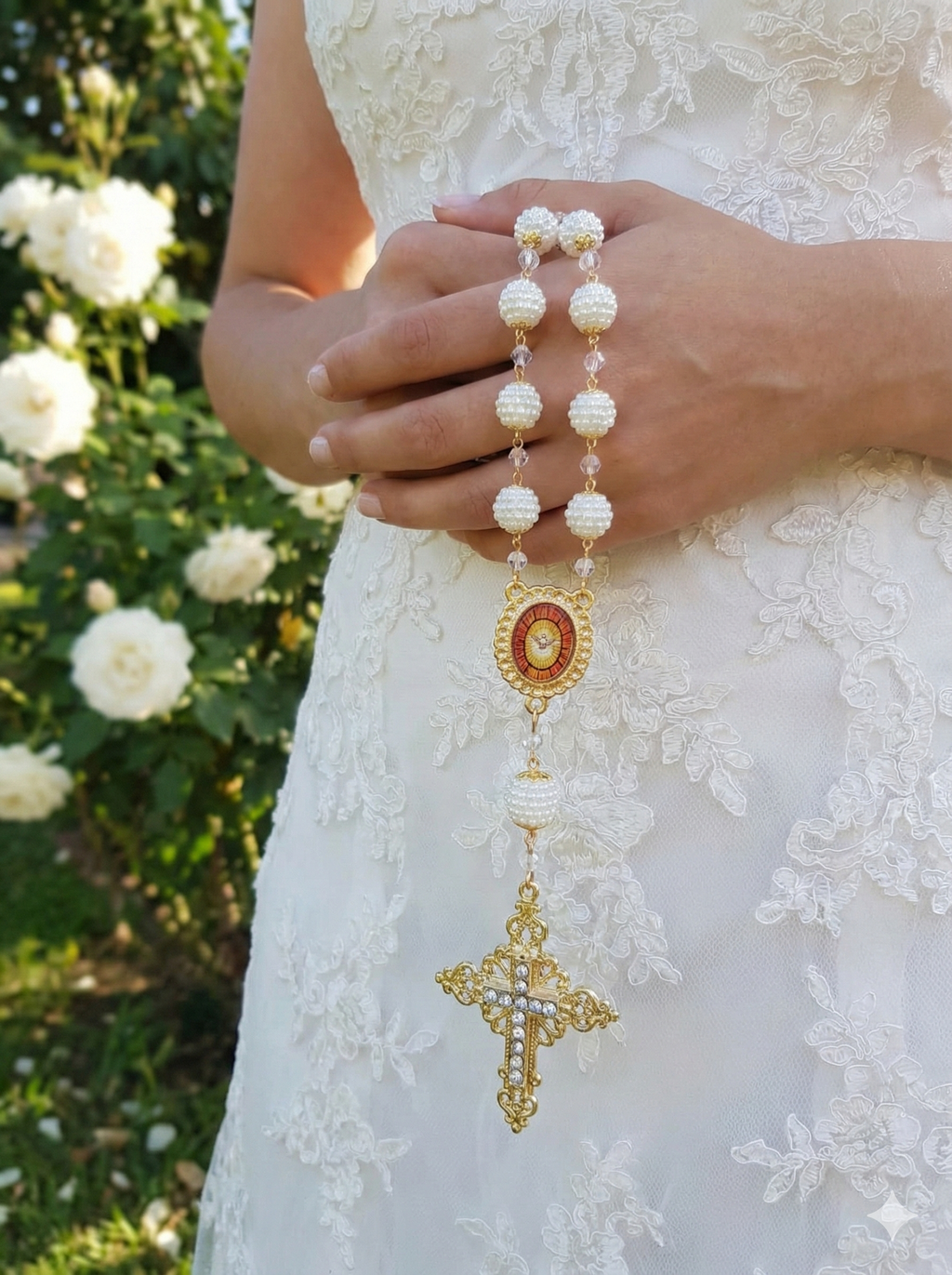 Um terço que não só completa o look da noiva, mas também carrega bênçãos para um novo capítulo repleto de amor.