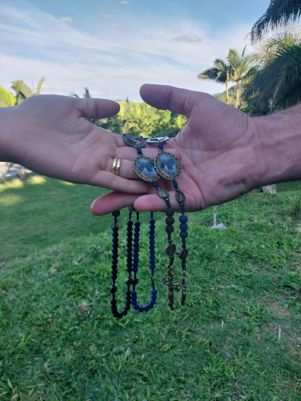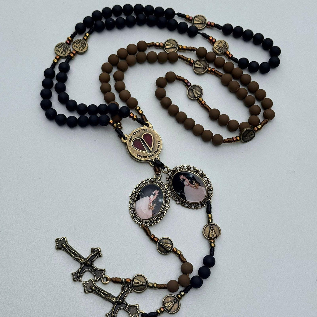 Um símbolo de fé, união e amor. Este conjunto exclusivo contém dois terços especialmente criados para casais , representando a caminhada espiritual a dois, fortalecida pela oração e pela presença de Deus.