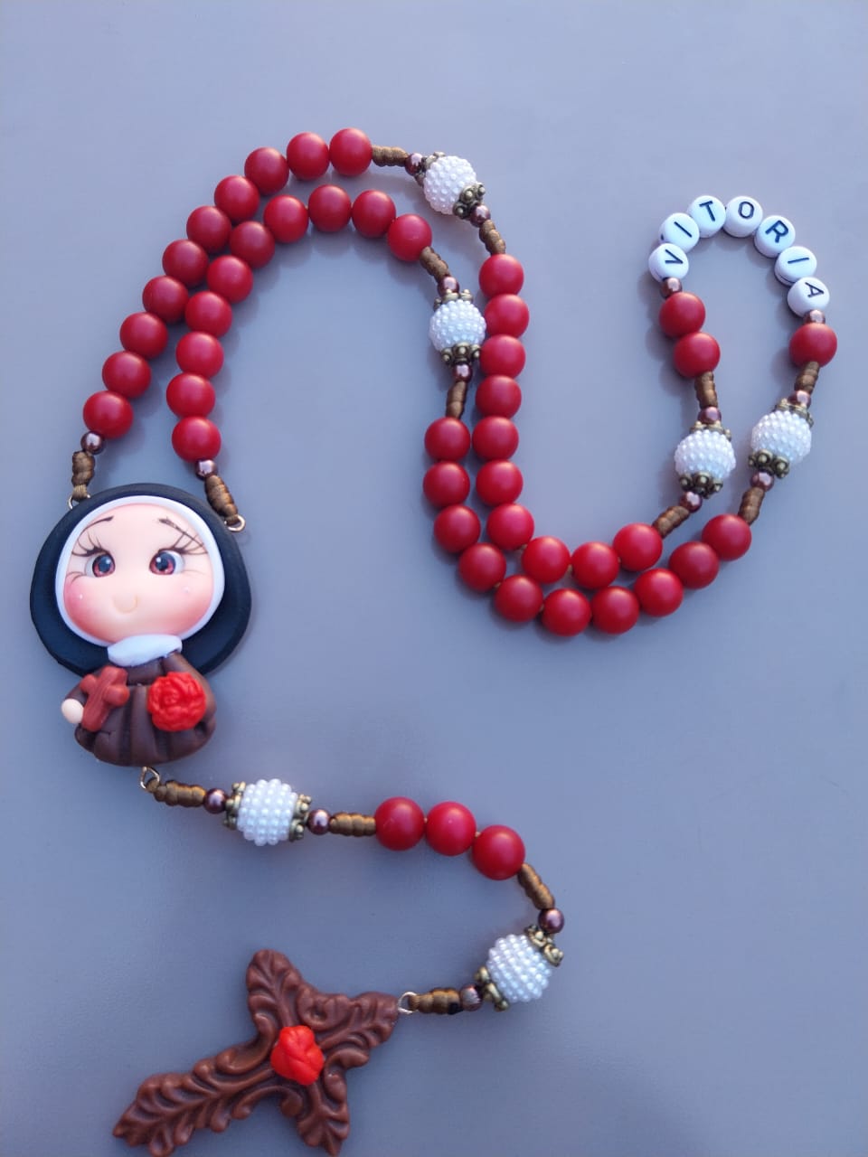 Este terço infantil foi criado especialmente para as crianças, com um design delicado, alegre e cheio de significado. Produzido com contas suaves e confortáveis ao toque, ele traz um entremeio em biscuit totalmente artesanal, modelado com carinho para representar a fé de forma doce e acessível aos pequenos.