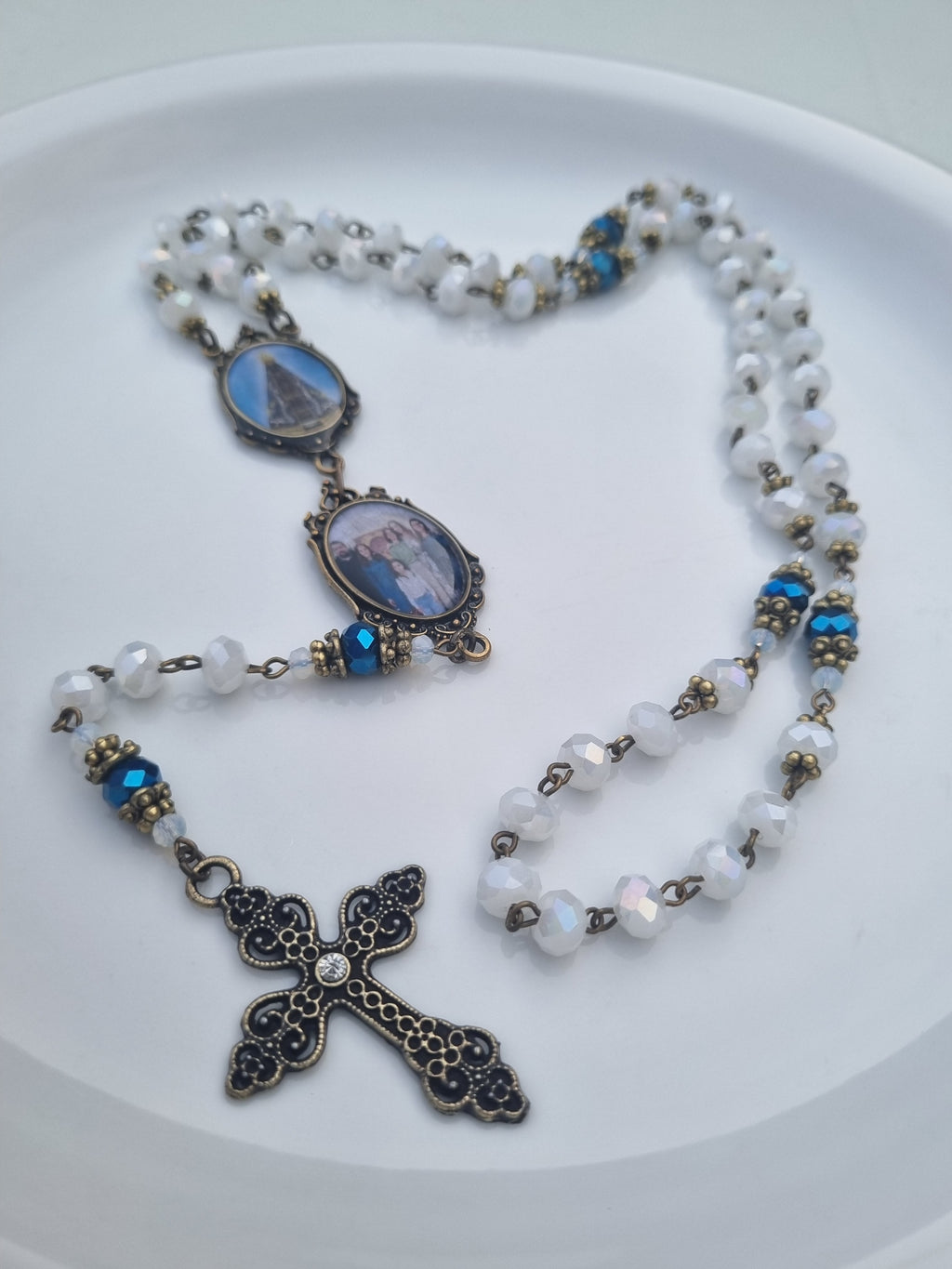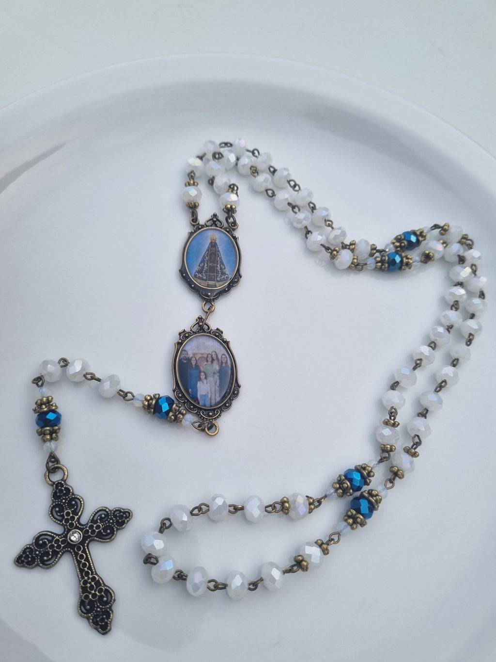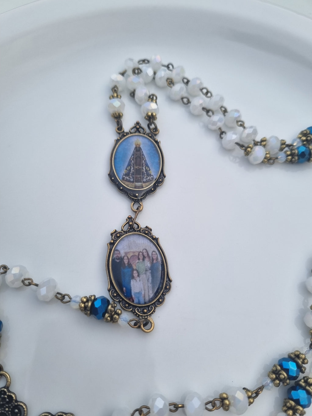 Nossos terços são produzidos à mão com cristais selecionados e peças diferenciadas , e você pode personalizar com seu nome e sua foto — um símbolo único de sua fé.