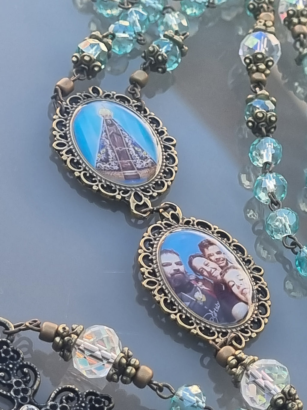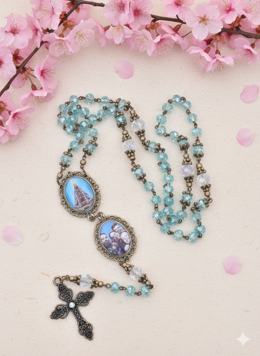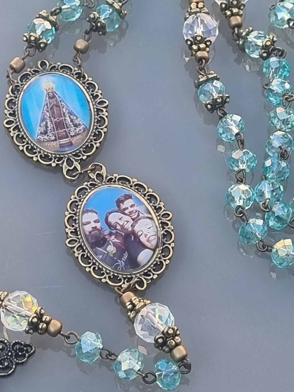 Nossos terços são produzidos à mão com cristais selecionados e peças diferenciadas , e você pode personalizar com seu nome e sua foto — um símbolo único de sua fé.